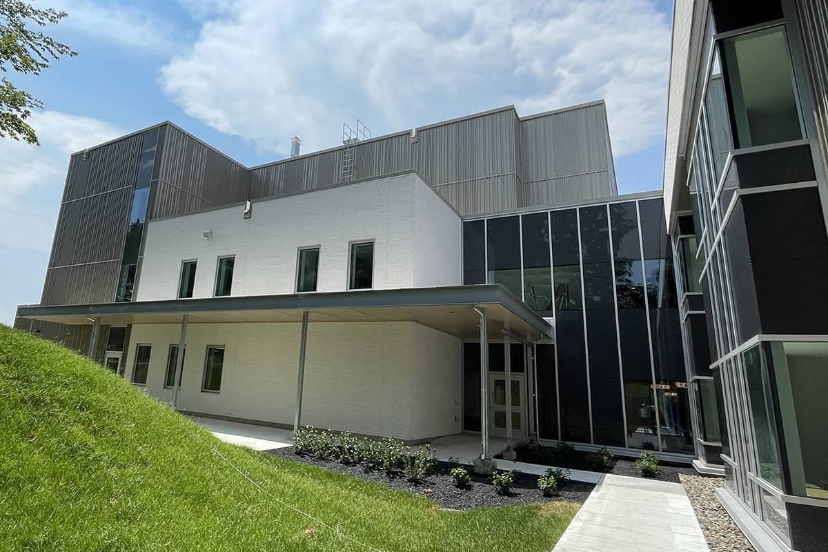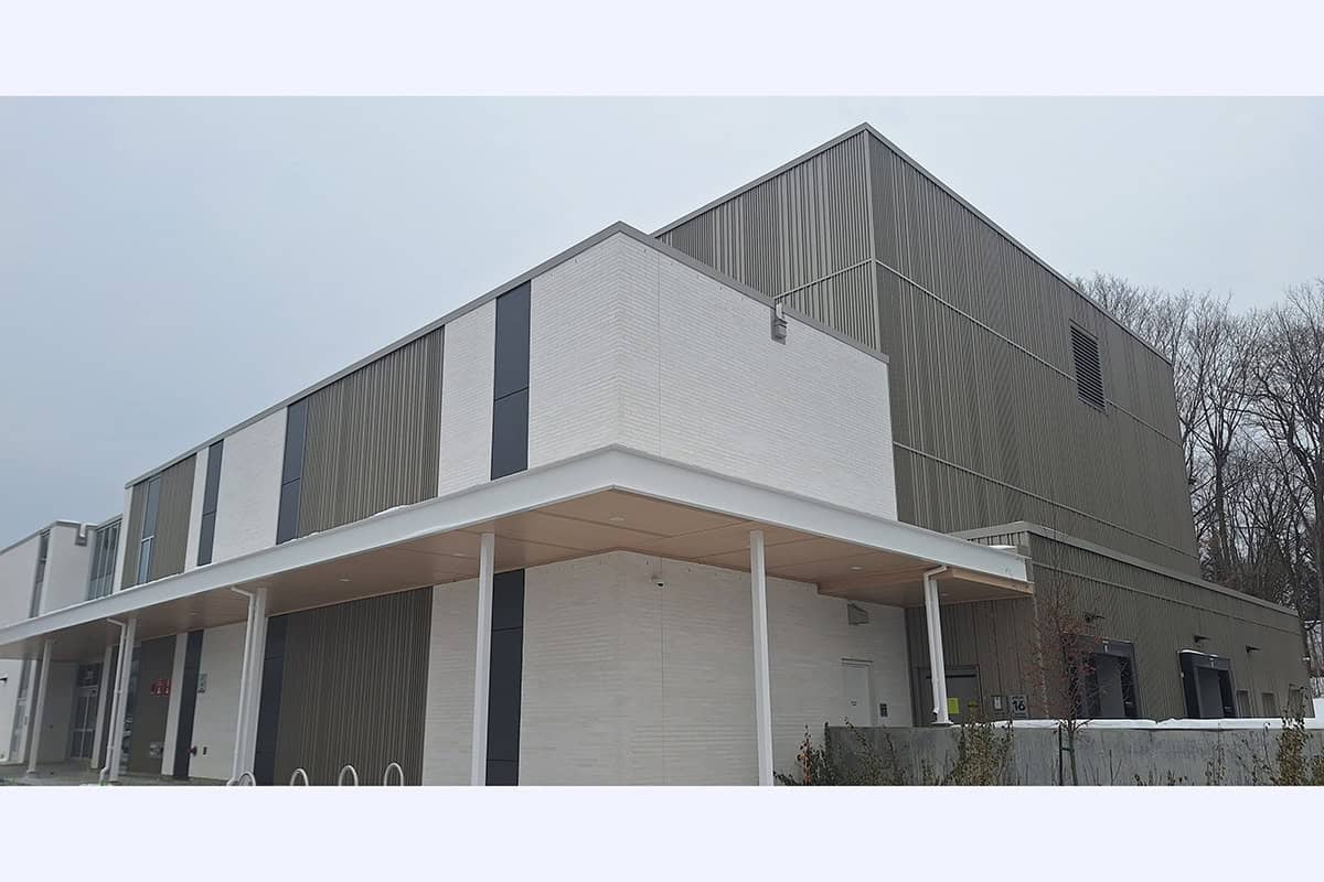 Nous avons fournis notre type PP-100 Panfab Profilé en 3 différents modèles PR-131 + PR-132 + PR-133, avec notre fini prépeint D-MAX d’une couleur standard nommée « neptune ».