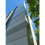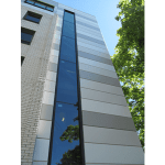 Pour le dernier étage et les cages d’escalier, recouvrement de nos produits avec type PS-200 Panfab Standard; en 3 couleurs de beige-gris, clair-pâle-moyen, avec fini peint uréthane acrylique en couleur spéciale développée sur mesure.