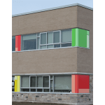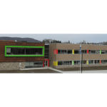 Pour cette nouvelle école primaire implantée dans un secteur résidentiel, dans une vallée, le choix audacieux des architectes était de « jouer » avec des couleurs afin de représenter une école « dynamique ».