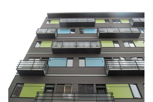 Pour ce projet d’Office Municipal d’Habitations, dans un contexte de remplacement de panneaux existants déficients, nous avons collaborés avec la fourniture de nos produits; en utilisant des dimensions hors-standards et développant des couleurs spéciales pour agencer la coloration originale.